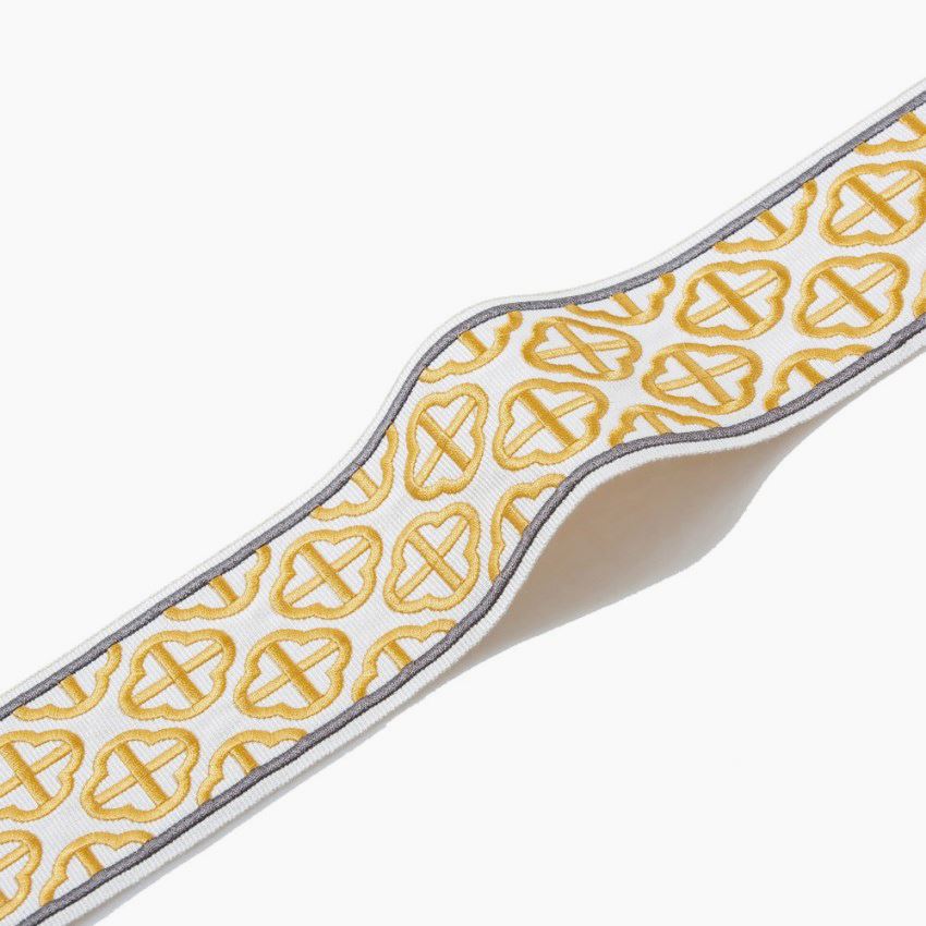 這款帶子,以貼布繡工藝,讓梅花呈現(xiàn)錯落的立體感;